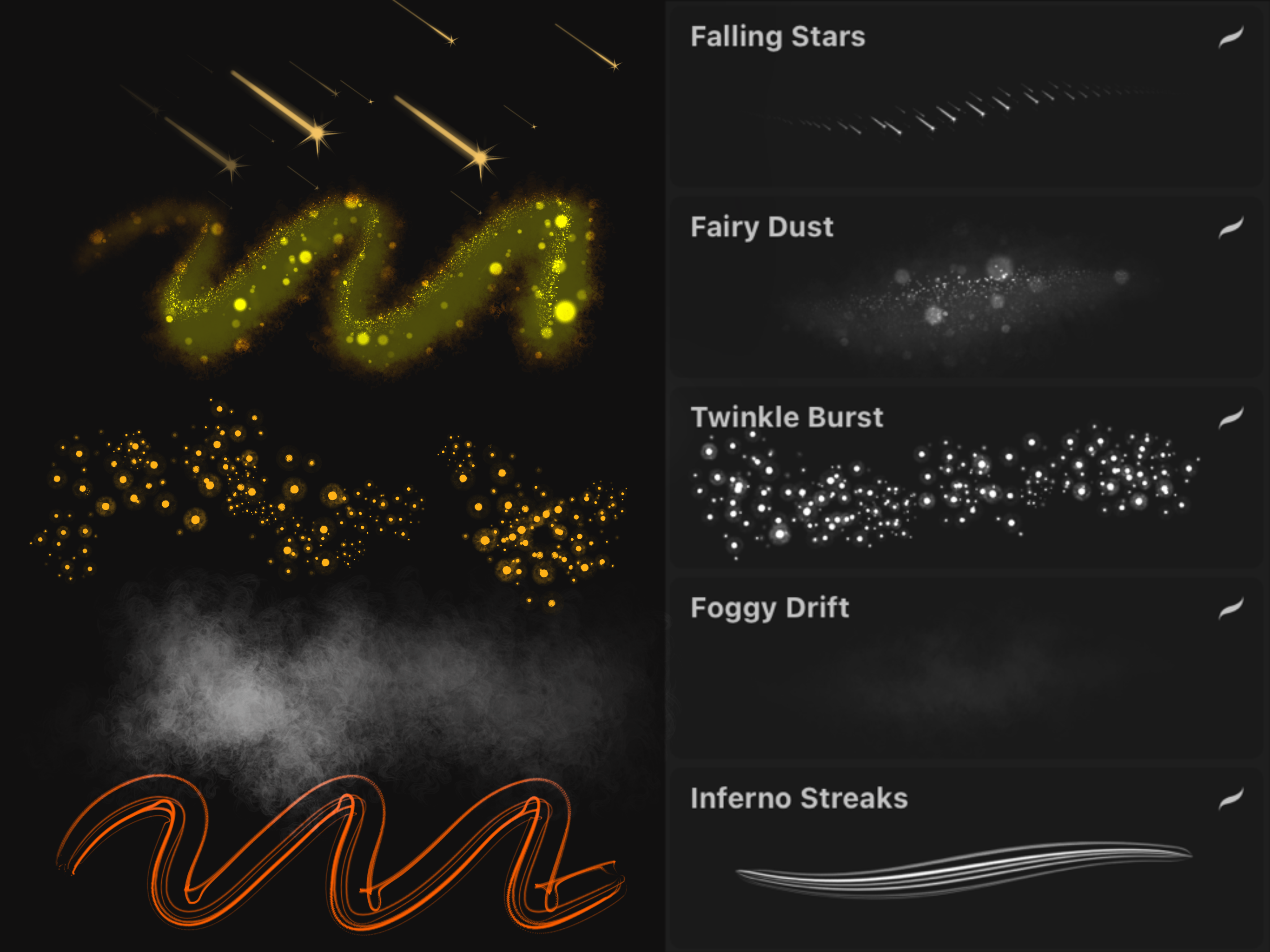 • 5 Sparkle & Particle Brushes: For magical trails, stardust, and starry skies.